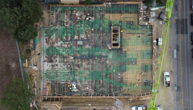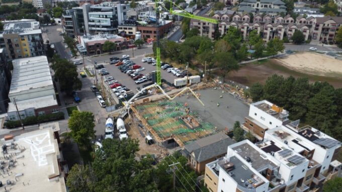 Dominion Construction poured the concreate podium being poured for the latest Urban Green Development in Denver back in October.