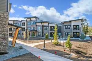 Modular construction also presents some design and logistical challenges. Modular buildings are most effective when unit size and layout are consistent, repeatable, and with as few unit types as possible. Unit plans must be finalized early in order for units to be built and delivered on schedule, and there is less flexibility for field modifications. Additionally, unit sizes are limited to that which can be put on a truck. Modular manufacturers should be able to guide as to maximum allowable shipping load, depending on location and route. Typical module sizes are approximately 13’ tall and 12-18’ wide depending on roads being traveled and whether or not the route includes crossing state lines. Length is less restrictive and may depend more on design and practicality. Dwelling units can be split into two or three modules, however, each must be a complete, structurally sound, and shippable 6-sided rectangle, which effects unit design.