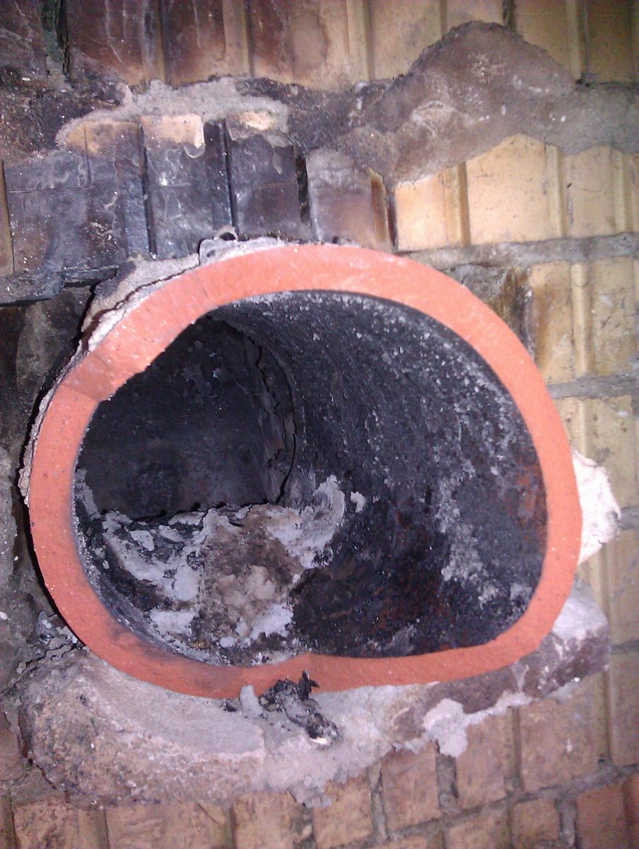Recently we looked at home where the fire was caused by the poor installation of a wood burning stove exacerbated by a lack of maintenance. In the image below you can see a clay flue. Inside that flue is a clear build up of the left over materials of combustion. If that material isn’t removed on a regular basis through chimney cleaning it can eventually cause a real nightmare.