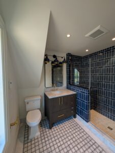 Each unit is designed to maximize factory scope and includes large open expanses between modules, dormer and roof framing integrated into the modules. A large portion of interior finishes were completed in the factory including electrically heated floor tile, wall tile and plumbing fixtures while wood floors, cabinetry and stone countertops are planned to be installed on-site.